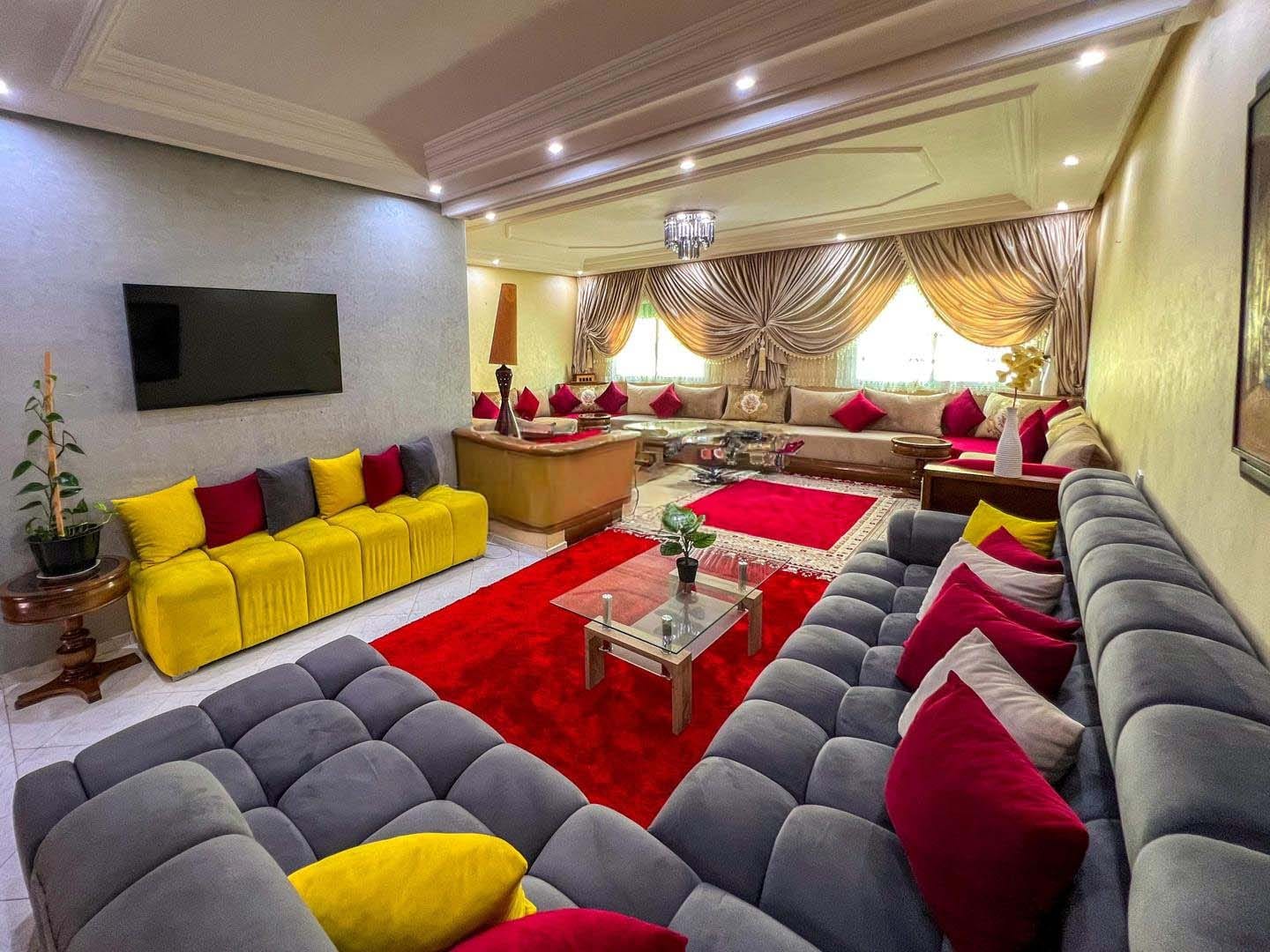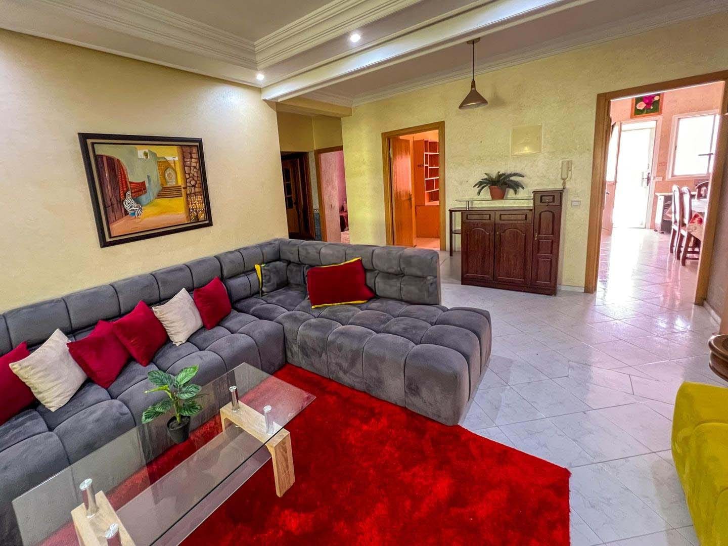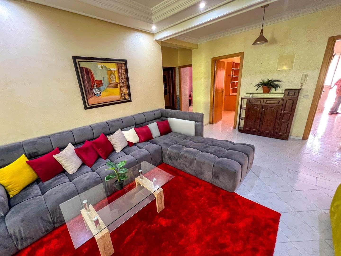 Superbe appartement de 3 pièces avec 2 salons, disponible à la location meublée, idéalement situé sur le boulevard Mohammed V, à proximité de toutes commodités.